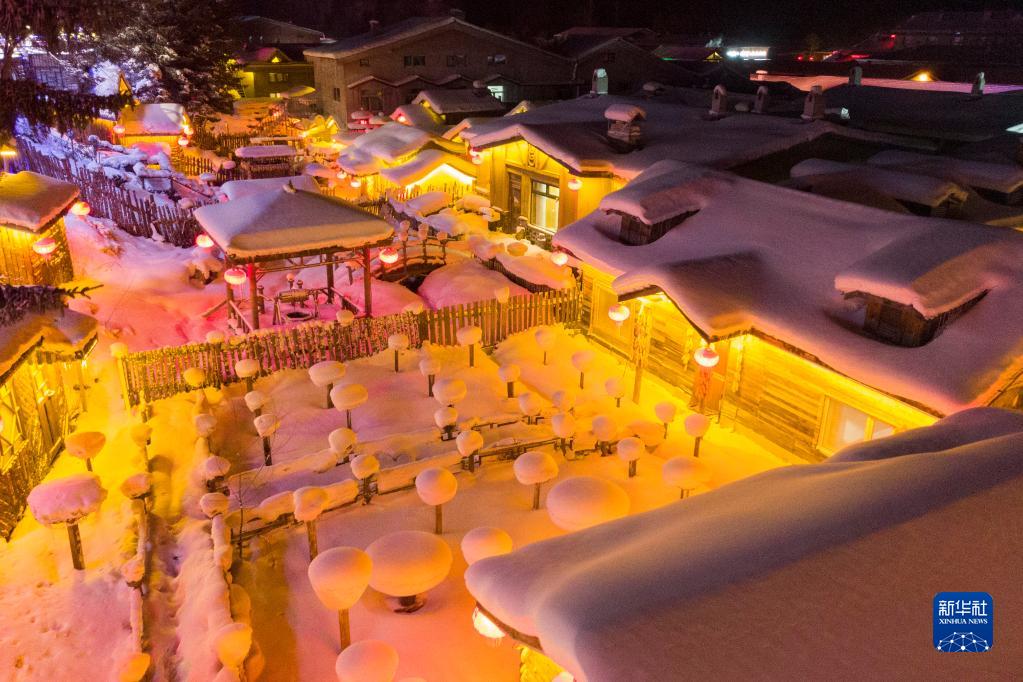 12月14日拍攝的雪鄉景區夜景(無(wú)人機照片)。