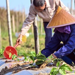 在欽州市三娘灣黃金百香果種植園,農民在種植黃金百香果苗(12月14日攝)。