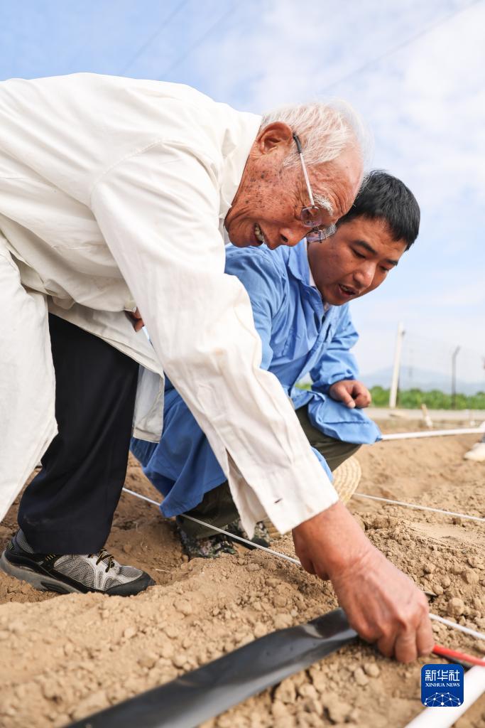 12月15日,玉米育種專(zhuān)家程相文(左)在三亞南繁科研育種基地給同事交代播種要點(diǎn)“橫一行、豎一行、斜一行”,即每行種子都要整整齊齊。
