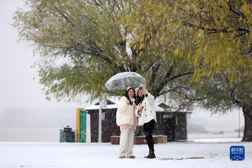 12月16日,在江蘇省淮安市,游人在洪澤湖古堰景區欣賞雪景。