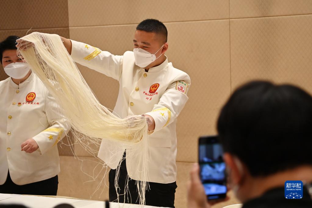 12月16日,廚師在2022中國非遺面食大會(huì )現場(chǎng)表演面食制作技藝。