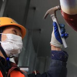 12月16日,中鐵五局建設者在貴陽(yáng)軌道交通三號線(xiàn)東風(fēng)鎮站內切割鋼材。