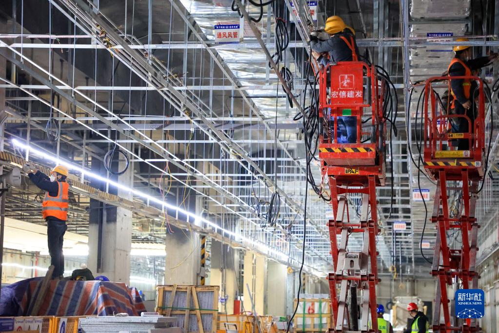 12月16日,中鐵五局建設者在貴陽(yáng)軌道交通三號線(xiàn)東風(fēng)鎮站內施工。