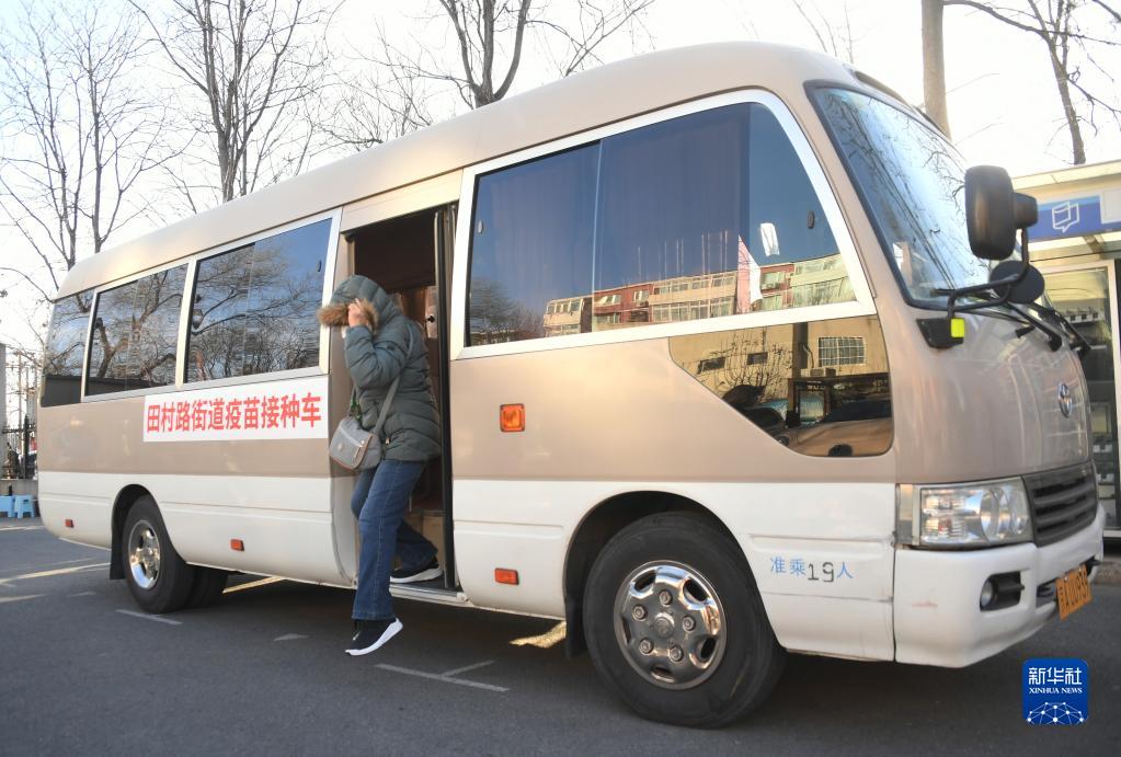 12月17日,在北京市海淀區田村路街道新冠疫苗臨時(shí)接種點(diǎn),一名老人從“暖心巴士”下車(chē)準備接種新冠疫苗。