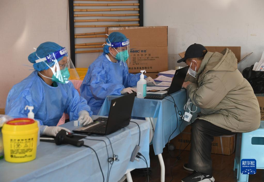 12月17日,在北京市海淀區田村路街道新冠疫苗臨時(shí)接種點(diǎn),醫護人員為市民登記信息。