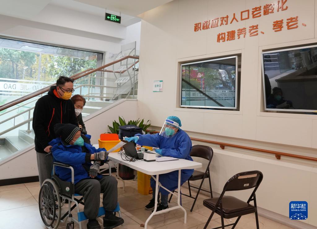 12月17日,在黃浦區打浦橋街道綜合為老服務(wù)中心,居民前來(lái)接種新冠疫苗。為應對寒潮天氣,該街道的社區衛生服務(wù)中心將設在露天大棚內的接種點(diǎn)調整到室內。