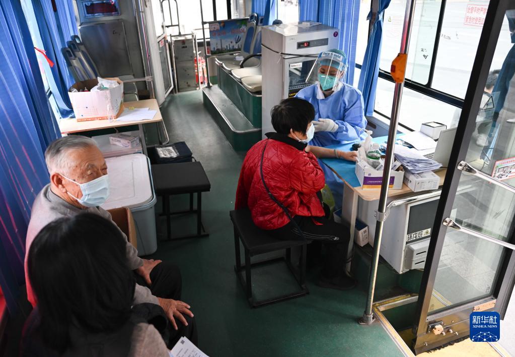 12月12日,在廣州市荔灣區廣鋼新城便民疫苗接種車(chē)上,老年居民在接種新冠疫苗。