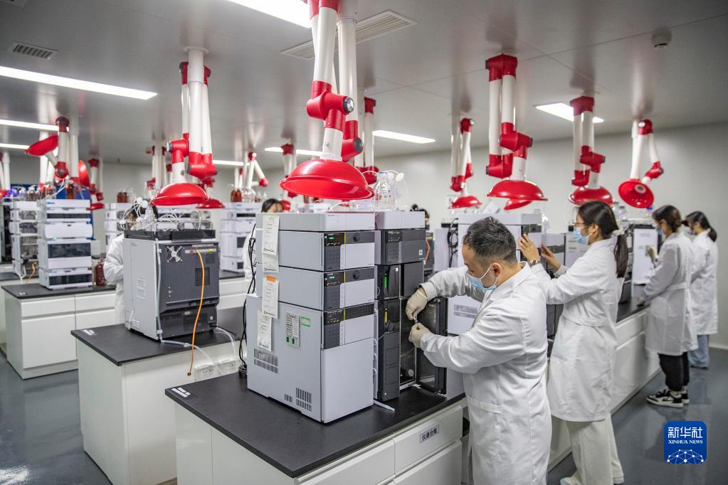 12月16日,在重慶市永川區新領(lǐng)先(重慶)生物醫藥一體化研發(fā)服務(wù)基地,新領(lǐng)先重慶研究院的研發(fā)人員在液相區對樣本進(jìn)行色譜分析。