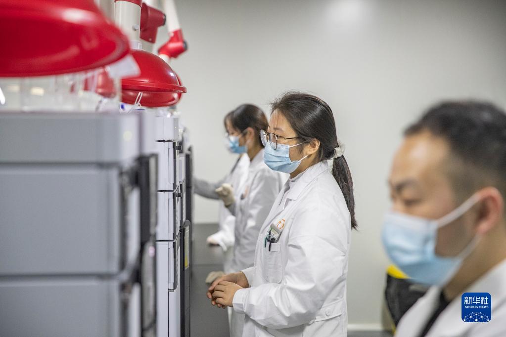 12月16日,在重慶市永川區新領(lǐng)先(重慶)生物醫藥一體化研發(fā)服務(wù)基地,新領(lǐng)先重慶研究院的研發(fā)人員在液相區對樣本進(jìn)行色譜分析。