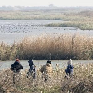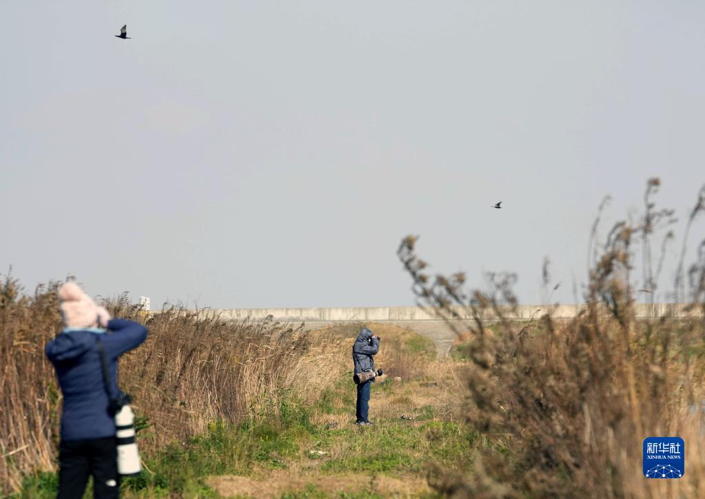 12月17日,在上海崇明東灘自然保護區,濱海社區觀(guān)鳥(niǎo)邀請賽的參賽者在觀(guān)鳥(niǎo)。