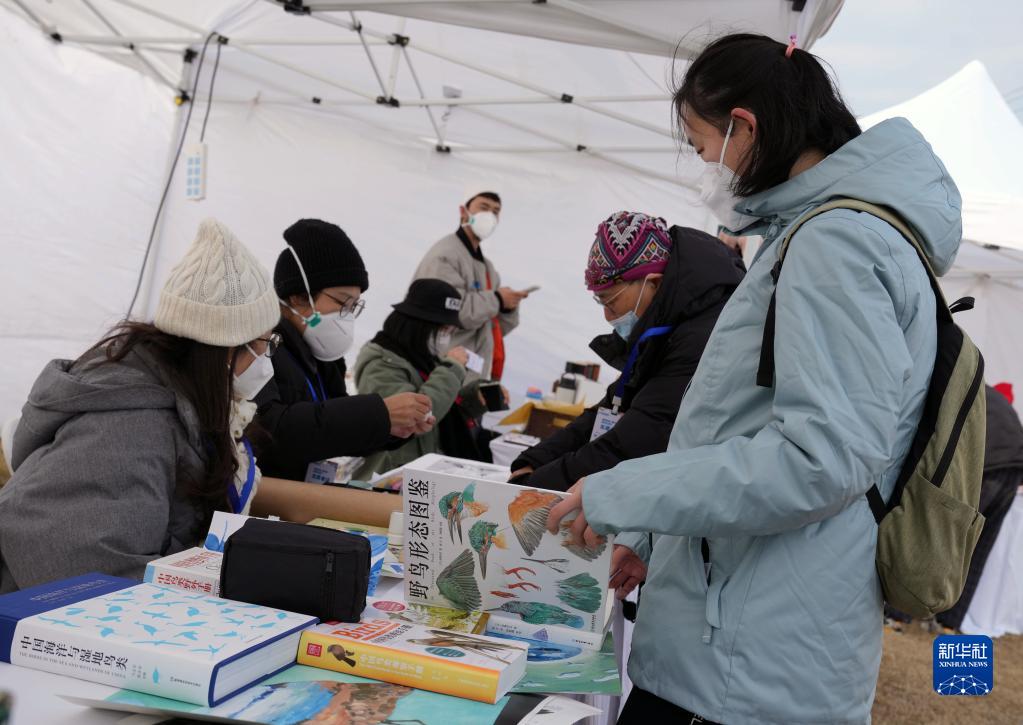 12月17日,人們在濱海社區觀(guān)鳥(niǎo)生活節生活集市上選購鳥(niǎo)類(lèi)知識書(shū)籍。