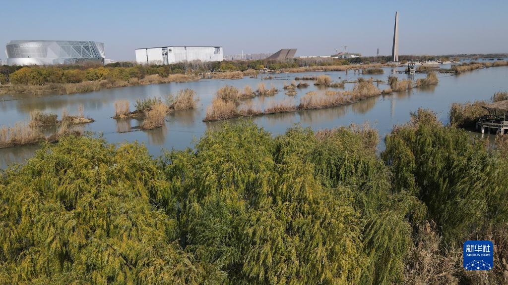 這是12月18日拍攝的安徽合肥巢湖湖濱國家濕地公園一景(無(wú)人機照片)。