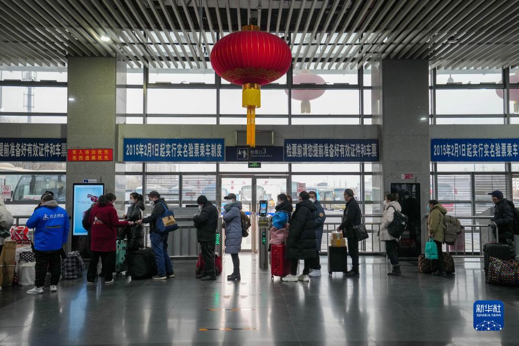 12月20日,在北京四惠長(cháng)途客運站,旅客在排隊等候檢票。