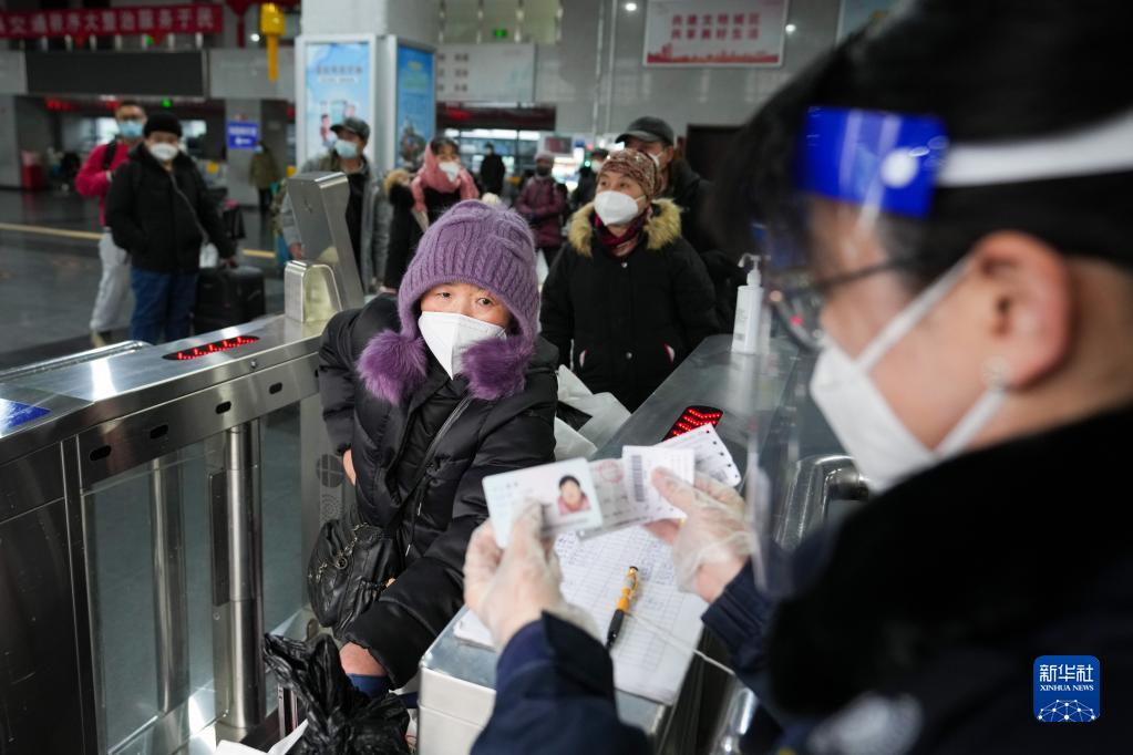12月20日,在北京四惠長(cháng)途客運站,前往河南南樂(lè )的旅客在檢票準備乘車(chē)。