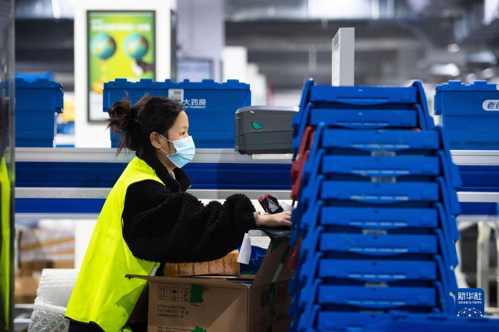12月20日,在位于長(cháng)沙市開(kāi)福區的老百姓大藥房長(cháng)沙物流中心,工作人員在登記入庫藥品信息。