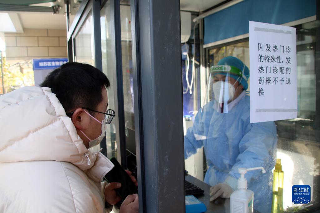 12月18日,在江蘇省蘇州市姑蘇區雙塔街道,市民在一處發(fā)熱診療站就診。