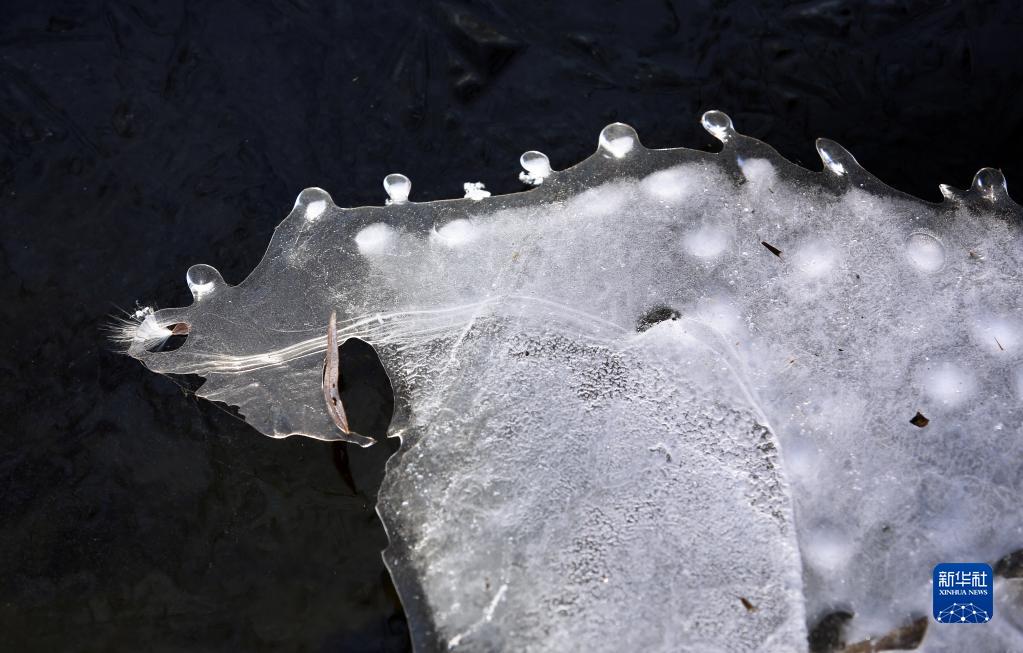 12月14日在天津市薊州區于橋水庫拍攝的冰花。