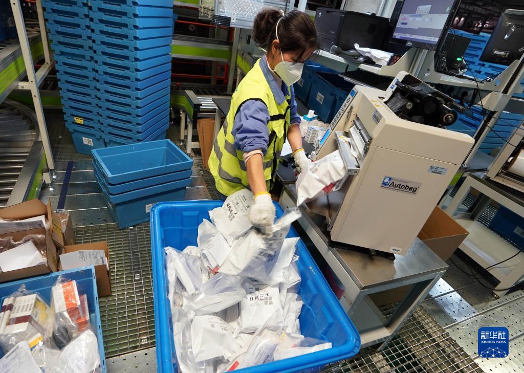 12月20日,工作人員在包裝供互聯(lián)網(wǎng)平臺個(gè)人訂購的藥品。