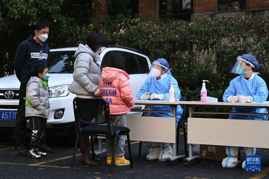 12月21日,杭州市西湖區留下街道社區衛生服務(wù)中心的醫護人員在和家園南社區為發(fā)熱居民診療。發(fā)熱居民只需要現場(chǎng)測溫、咨詢(xún)癥狀,就能當場(chǎng)取藥回家。