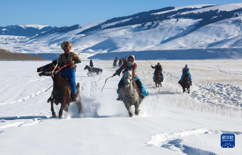 12月21日,新疆伊犁哈薩克自治州昭蘇縣薩爾闊布鄉農牧民舉行“姑娘追”活動(dòng),這是哈薩克族的傳統馬上體育運動(dòng)。入冬以來(lái),昭蘇縣各族農牧民開(kāi)展豐富多彩的民間文化體育活動(dòng),豐富冬閑時(shí)節生活。