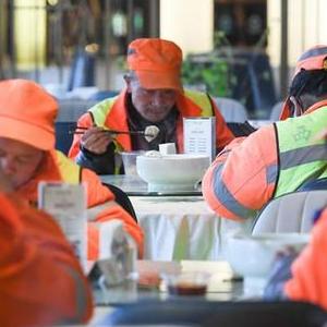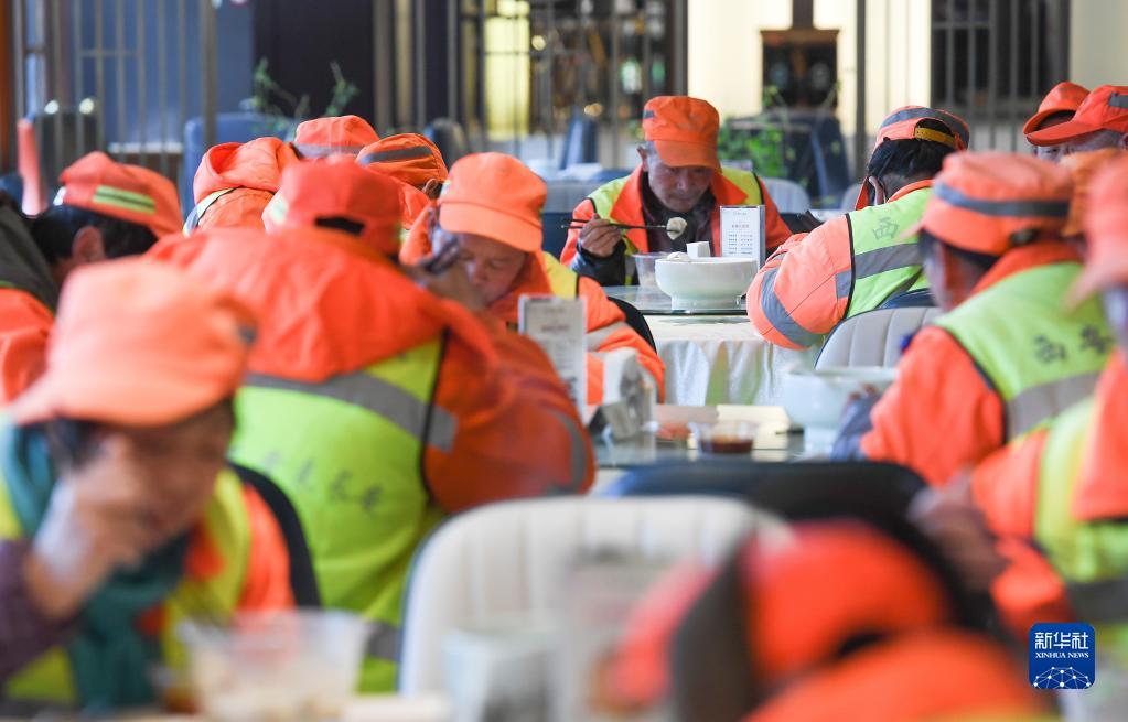 12月22日,環(huán)衛工人在西安市新城區一家餐廳吃水餃。