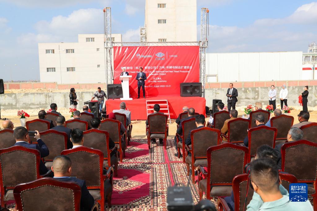 這是12月21日在埃及貝尼蘇韋夫省拍攝的安琪酵母(埃及)有限公司年產(chǎn)2萬(wàn)噸酵母制品擴建項目開(kāi)工儀式現場(chǎng)。