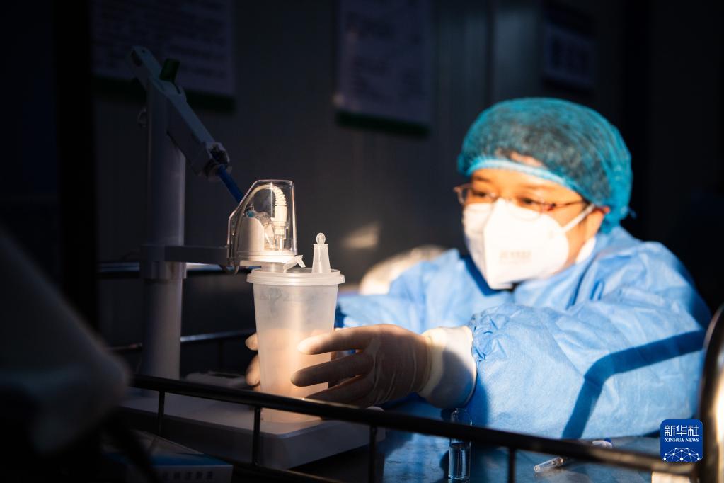 12月22日,在長(cháng)沙市天心區南托街道社區衛生服務(wù)中心,醫務(wù)人員在霧化疫苗。