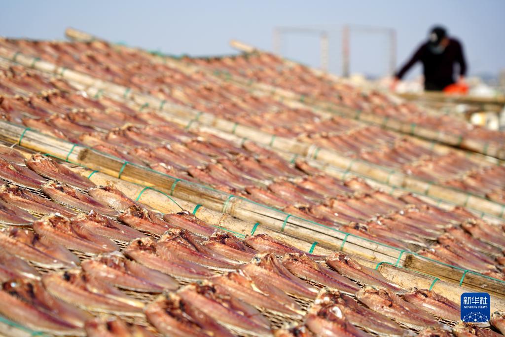12月22日,浙江省樂(lè )清市天成街道萬(wàn)澤村的農戶(hù)在翻曬魚(yú)干。