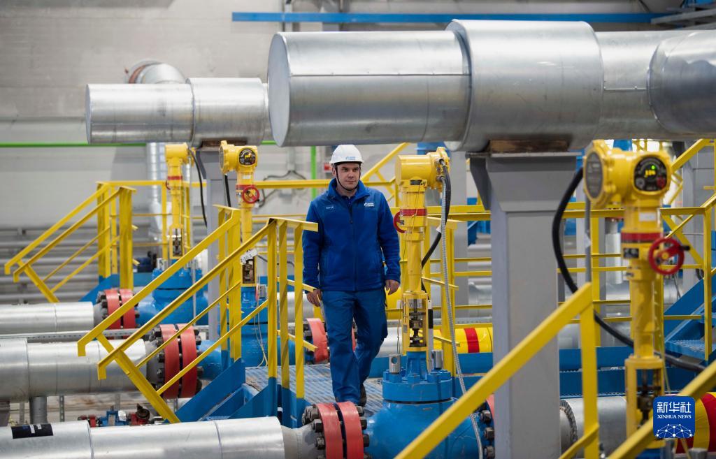 12月18日,在俄羅斯伊爾庫茨克州,工作人員在科維克塔天然氣氣田內巡視設備。