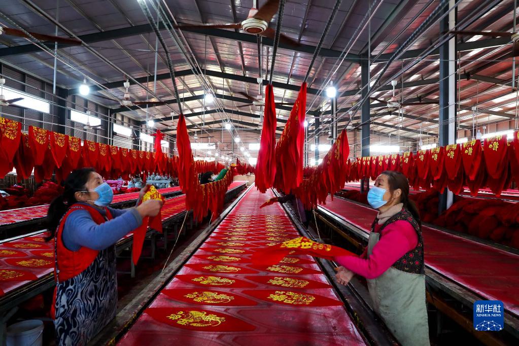 12月22日,安徽省五河縣頭鋪鎮一燈籠加工作坊,工作人員忙著(zhù)制作各種款式燈籠。
