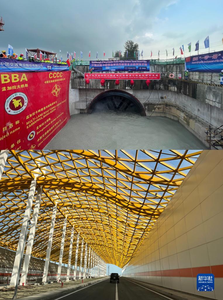 上圖:這是2021年10月7日在孟加拉國吉大港市拍攝的卡納普里河底隧道項目施工現場(chǎng)。新華社記者 劉春濤 攝
