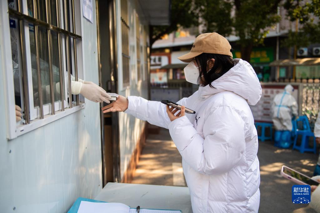 12月23日,在長(cháng)沙市湘江新區望岳街道社區衛生服務(wù)中心,市民在領(lǐng)取防疫健康包。