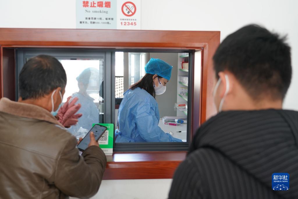 12月22日,在周至縣馬召鎮富饒村東富饒衛生室內,發(fā)熱患者在取藥。