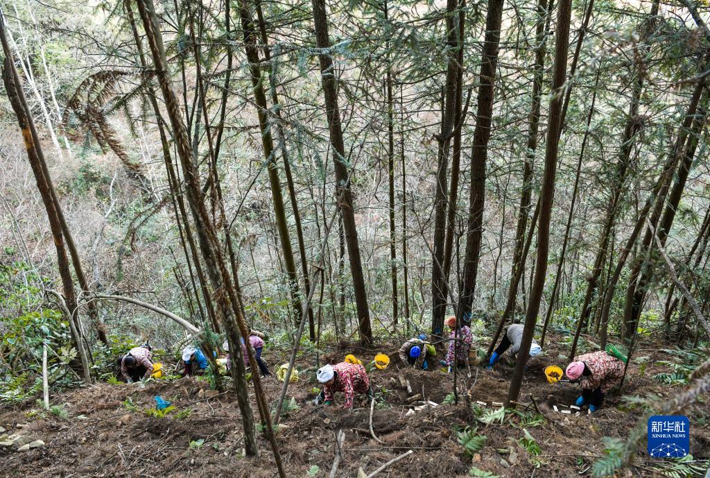 12月21日,農民在貴州省黎平縣九潮鎮萬(wàn)寶山天麻種植基地勞作。