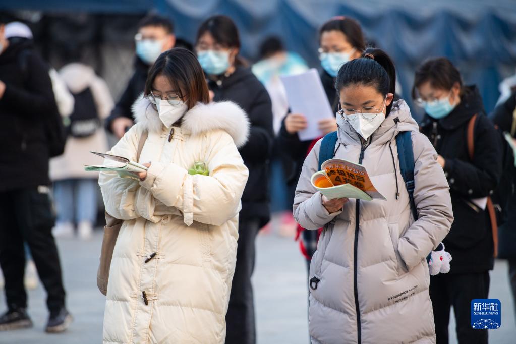 12月24日,在湖南中南大學(xué)考點(diǎn),考生在考場(chǎng)外復習。