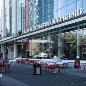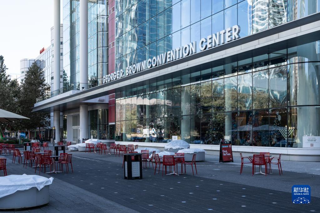 這是12月23日在美國休斯敦市拍攝的成為臨時(shí)供暖場(chǎng)所的喬治·布朗會(huì )展中心。