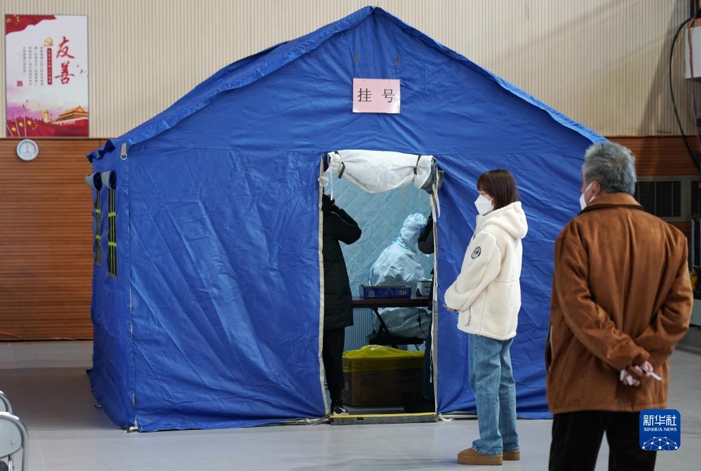12月24日,市民在北京市西城區廣安體育館簡(jiǎn)易發(fā)熱門(mén)診排隊掛號。
