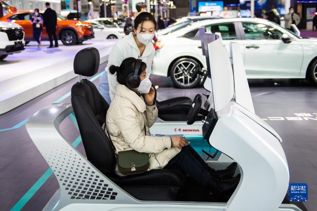 12月24日,在長(cháng)沙國際會(huì )展中心,觀(guān)眾(前)在虛擬駕駛艙上體驗。