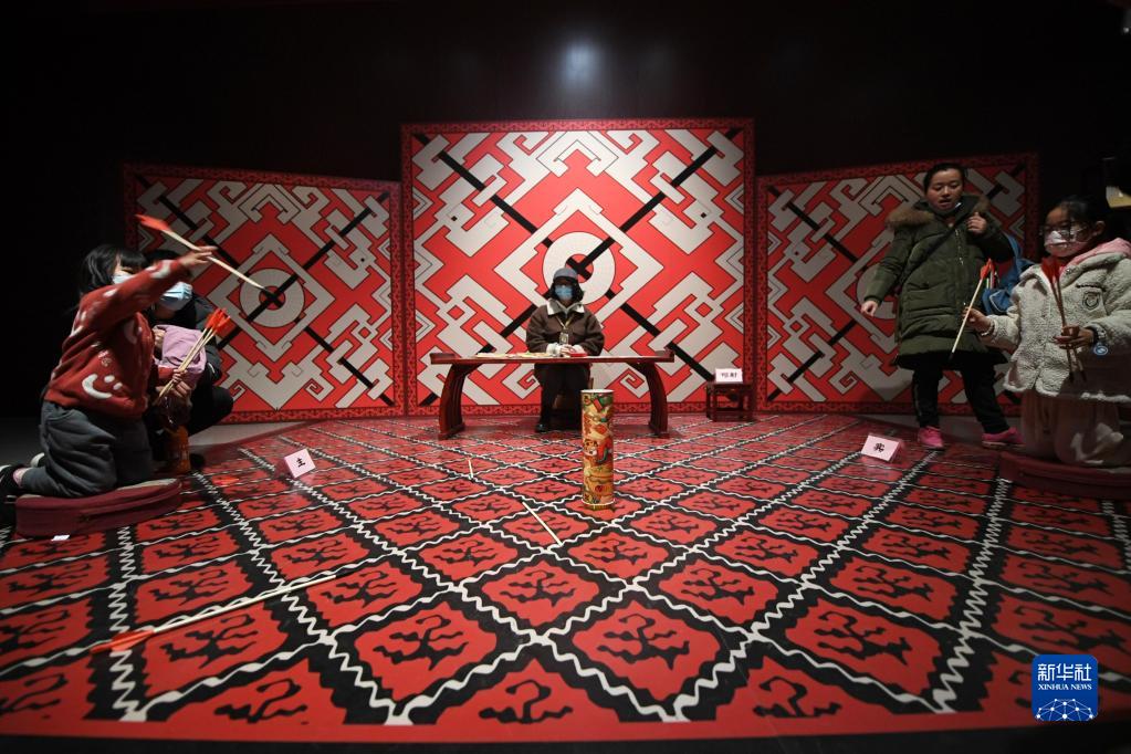 2022年2月10日,長(cháng)沙博物館開(kāi)展投壺體驗活動(dòng),吸引不少小朋友參與到這一傳統游戲當中。投壺即“投箭入壺”,是一種古代宴飲的投擲游戲。