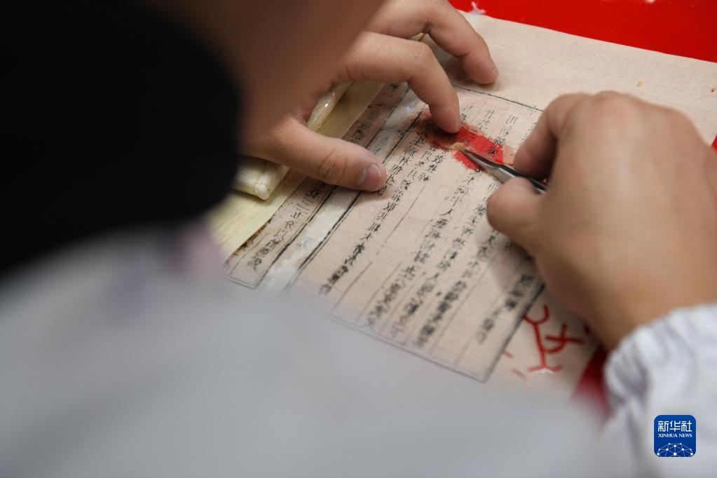 2022年10月20日,在安徽中醫藥大學(xué)圖書(shū)館古籍部,古籍修復師茆可人進(jìn)行古籍修復。作為第三批“全國古籍重點(diǎn)保護單位”,安徽中醫藥大學(xué)圖書(shū)館不斷推進(jìn)中醫古籍傳承和保護工作,目前藏有古籍3.3萬(wàn)余冊。近年來(lái),圖書(shū)館運用數字化手段,使中醫古籍更好服務(wù)中醫藥教學(xué)、科研及醫療。