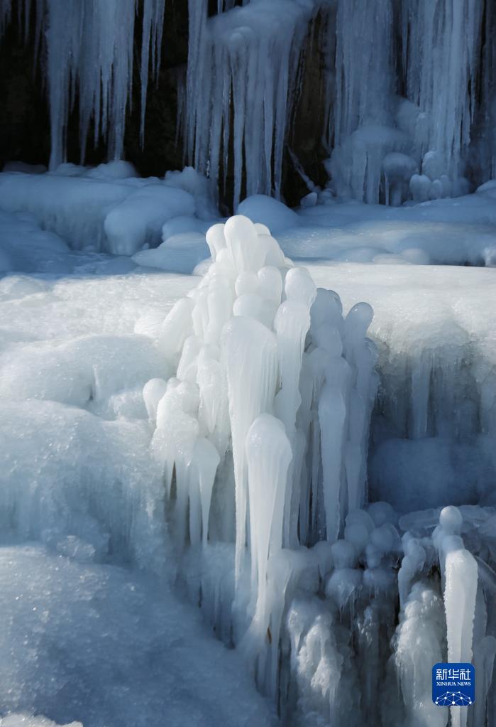 寒冬時(shí)節,山東省臨沂市沂南縣香山湖畔的崖壁上出現冰瀑景觀(guān)。形態(tài)各異的冰瀑、冰掛、冰柱晶瑩剔透,蔚為壯觀(guān)。
