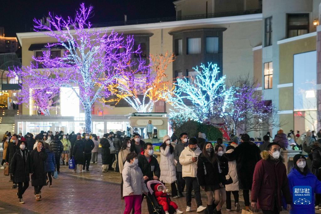 市民在北京市朝陽(yáng)區藍色港灣購物中心購物休閑(12月24日攝)。