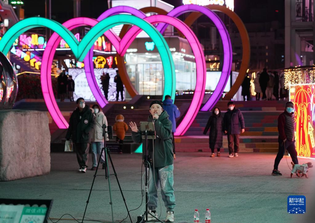 一名歌手在北京五棵松華熙Live表演(12月25日攝)。
