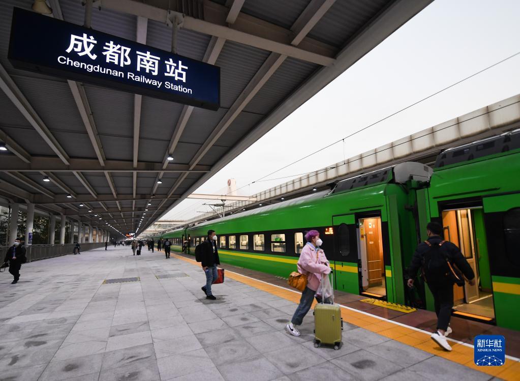 12月26日,在成都南站,乘客登上新成昆鐵路首發(fā)列車(chē)。