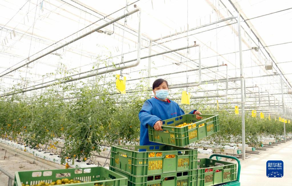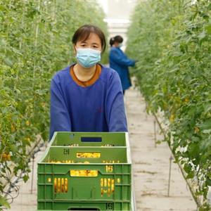 12月27日,在邢臺市南和區賈宋鎮一家現代農業(yè)園區,工人在搬運西紅柿。