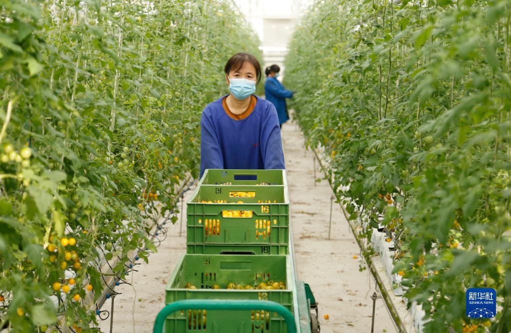 12月27日,在邢臺市南和區賈宋鎮一家現代農業(yè)園區,工人在搬運西紅柿。