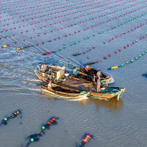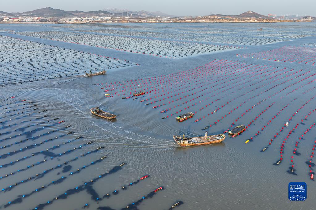 目前,山東省榮成市各大海洋牧場(chǎng)貝類(lèi)、藻類(lèi)養殖正處于冬季管護期,漁民們駕駛漁船在海面上穿梭,進(jìn)行添加養殖浮漂、清理海草及投喂餌料等作業(yè),呈現出一派“海上冬耕”生產(chǎn)的繁忙景象。