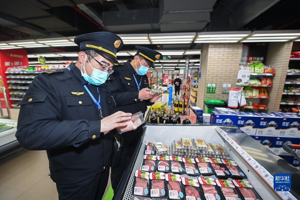 12月27日,在嘉興市一生鮮超市內,嘉興市南湖區市場(chǎng)監督管理局執法人員檢查生鮮貨品的來(lái)源和價(jià)格。