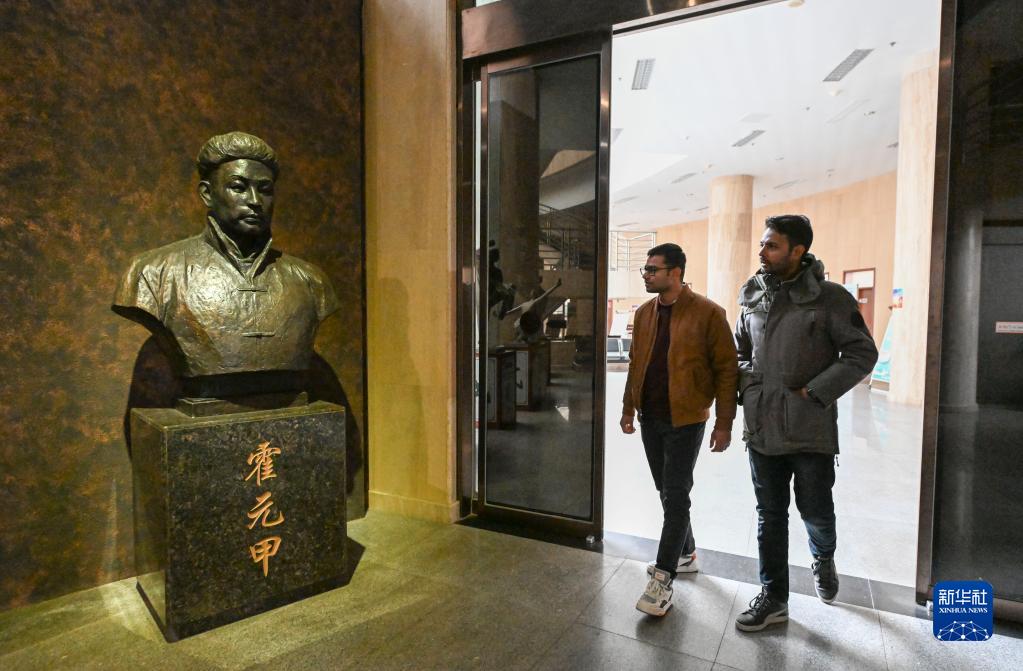 穆罕默德·納比爾(右)與好友一起在天津市西青區精武鎮霍元甲紀念館內參觀(guān)(12月25日攝)。