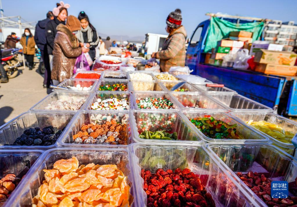 12月28日,在河北省遵化市西留村鎮,人們在大集上選購年貨。